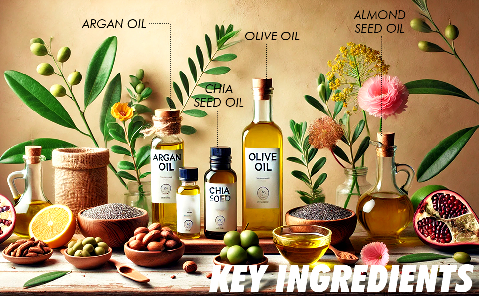 - Argan Oil: Rich in Vitamin E, fatty acids, and antioxidants.