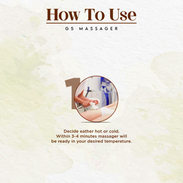 use twice in a week G – five massager use with telcom powder after one hour of device massage for a tight massage with slimming oil ( use hot oil ) the very same day you can lose 1 kg to 3 kg