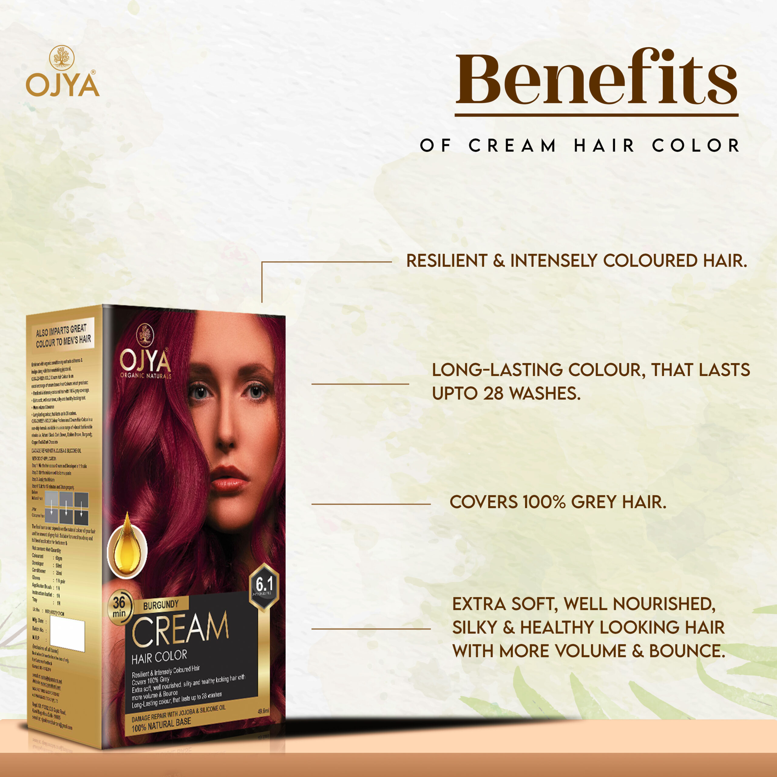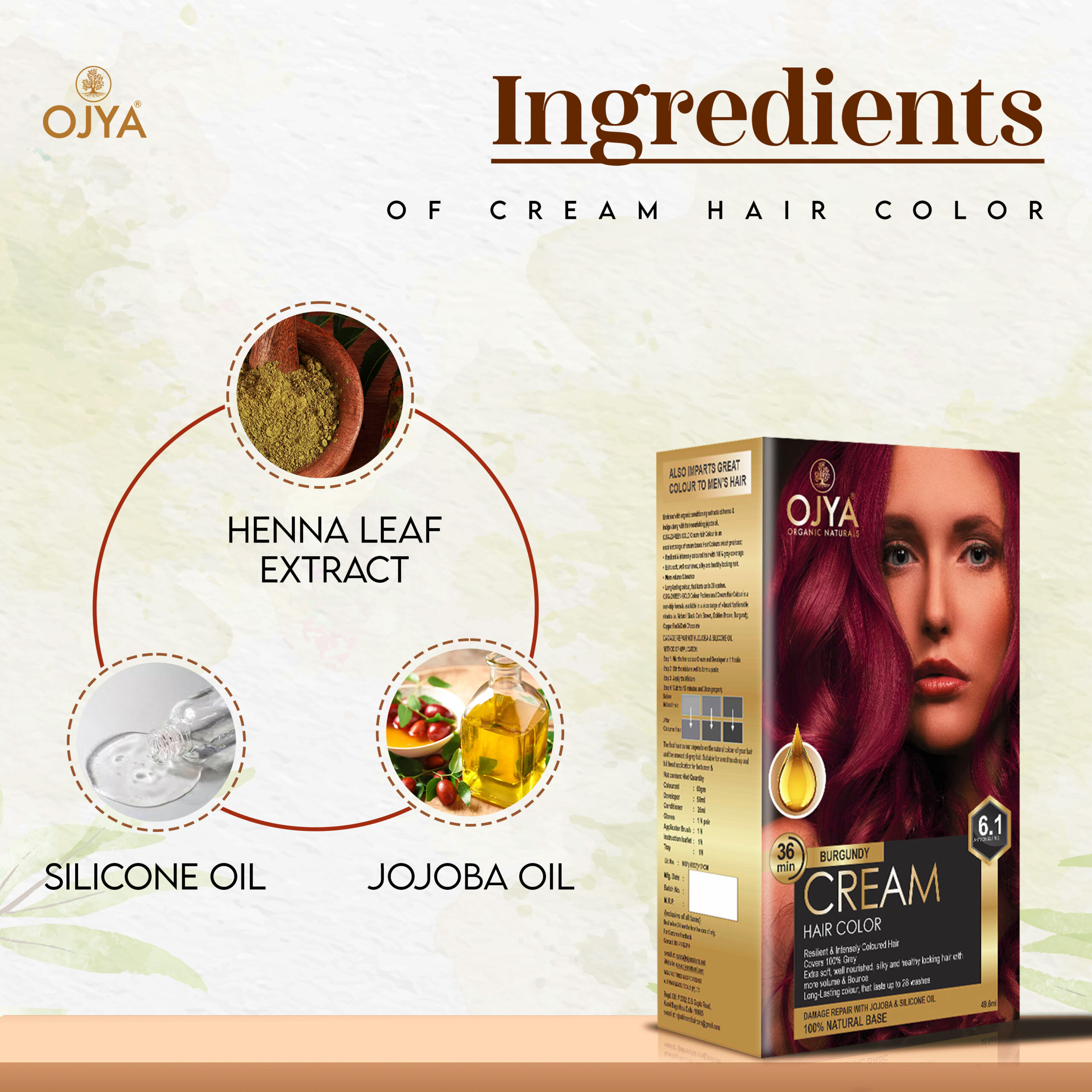 BURGUNDY CREAM HAIR COLUR COMBO ( cream hair color 50 ML GM , post ayurvedic shampoo 200 ML , ayurvedic hair oil 200 ML)