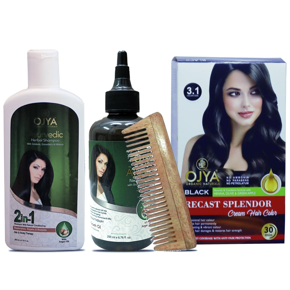 KERATIN RECAST BLACK CREAM HAIR COLOR COMBO WITH POST HAIR SHAMPOO 200 ML , HAIR OIL 200 ML WITH NEEM WOODEN COMB
