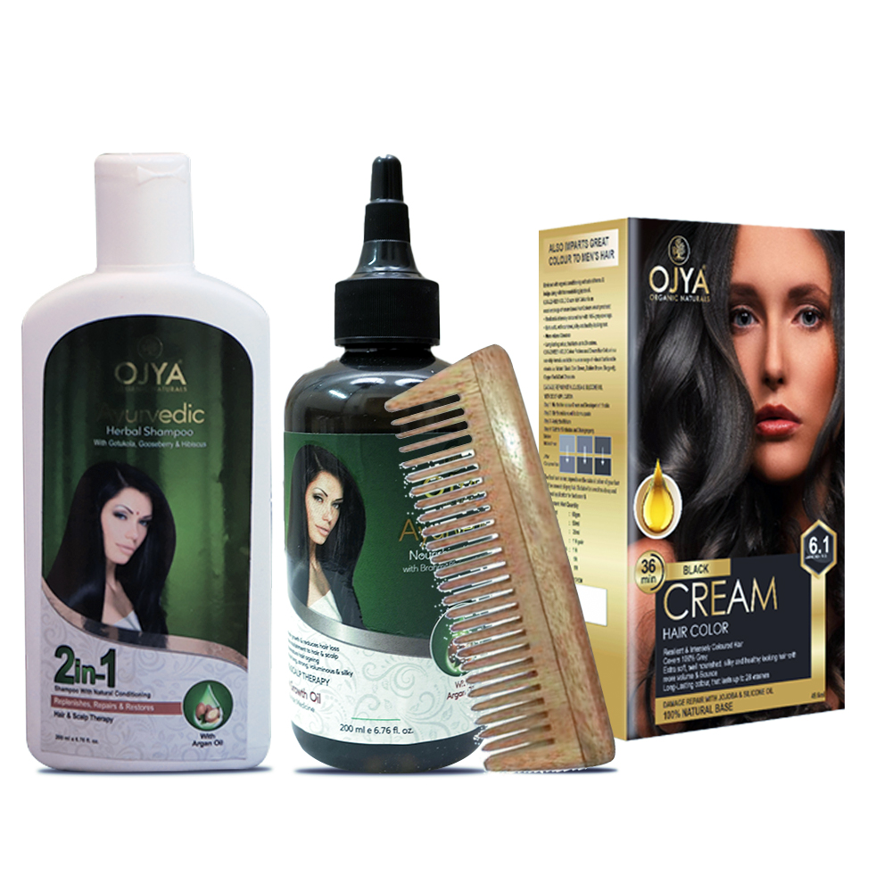 BLACK CREAM HAIR COLUR COMBO ( cream hair color 50 ML GM , post ayurvedic shampoo 200 ML , ayurvedic hair oil 200 ML)