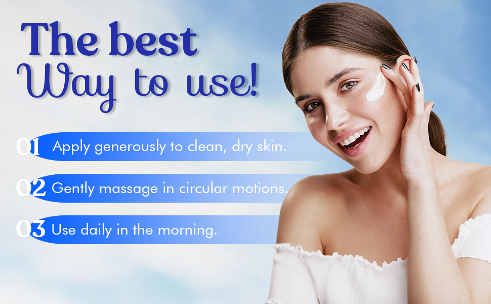 How to use: Apply generously to clean, dry skin. Gently massage in circular motions until fully absorbed. Use daily in the morning  or in night  as the final step of your skincare routine and use daily for best results.