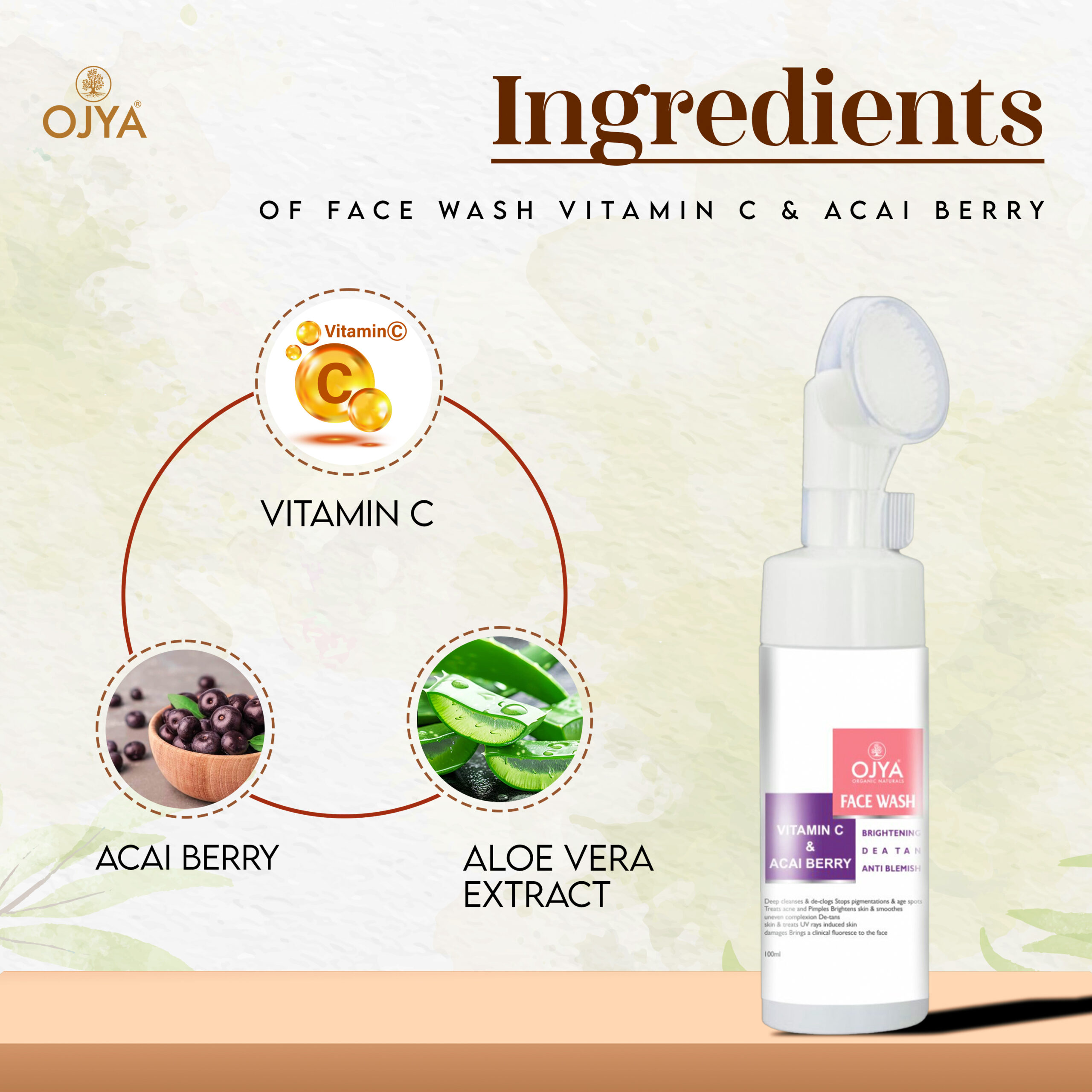 FOAMING FACE WASH , VITAMIN C + ACAI BERRY ( brightening , anti blemish , glow skin )150 ML
